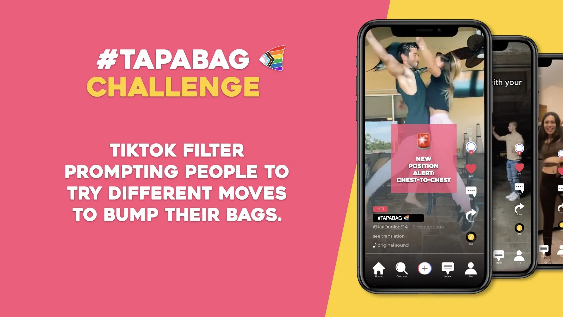 Organic TikTok challenge which uses a series of filters to gamify tapping bags. As the challenge progresses, the filter prompts speed up, resulting is a hilarious bumps, taps, and bangs.